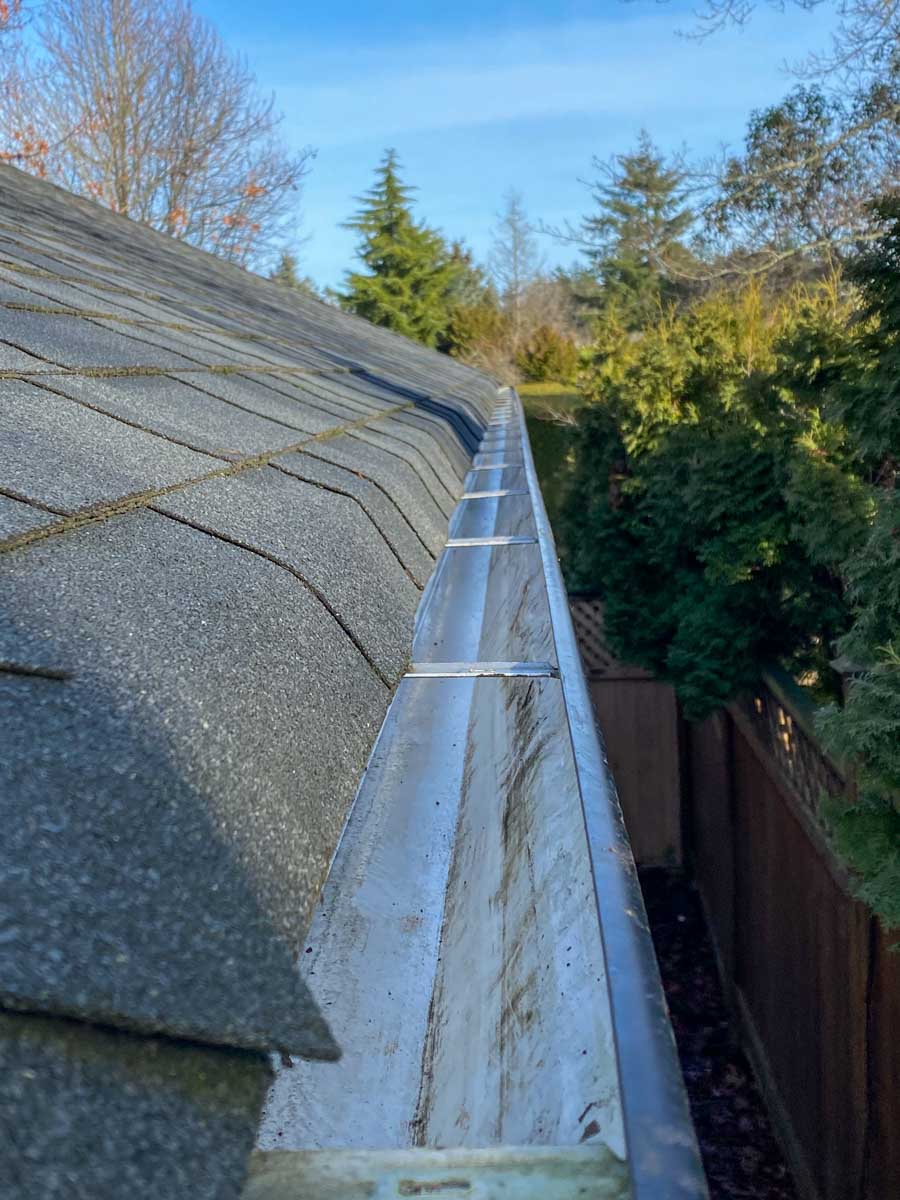 We clean all gutters by hand and make sure all downspout are clear and draining.